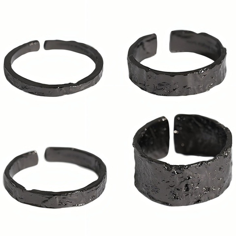 Conjuntos de anillos de cuatro dedos Bague Pour Homme Cool Black Jet Antique S925 plata esterlina hombres mujer pareja personalidad anillo de plata