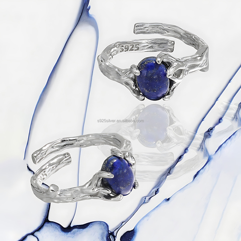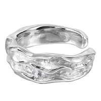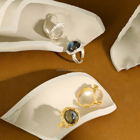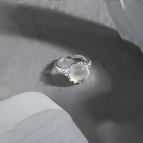 Anillo abierto con textura de piedra lunar de estilo minimalista personalizado para mujer, anillo ajustable de Plata de Ley 925 con diseño Irregular para mujer