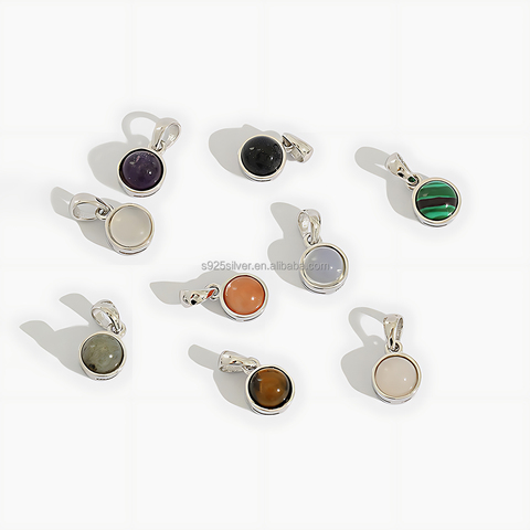 Joyería de piedras preciosas naturales de ágata de cristal de plata 925 al por mayor colgante fino de forma redonda para la fabricación de joyas