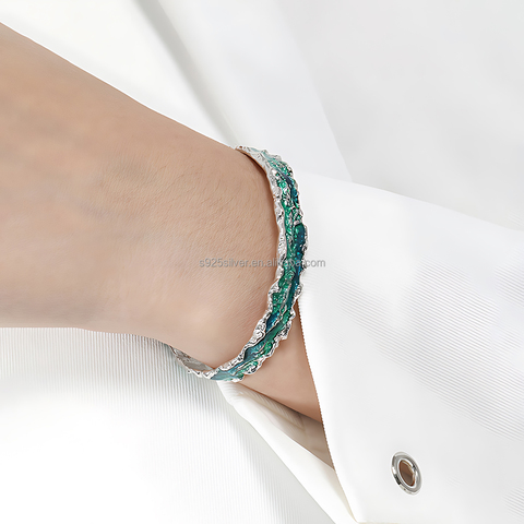 Accesorios chinos en línea Luz de lujo verde 925 pulsera dispensadora de plata esterlina mujeres pulseras finas brazaletes