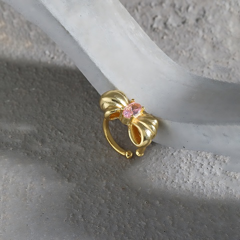 Brazalete de oreja con diseño de lazo de Plata de Ley 925 con Clip de piedra ovalada CZ rosa, joyería bonita no perforada para mujer