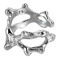 Joyería fina, brazalete de oreja martillado con textura de Coral de Plata de Ley 925 para mujer, joyería de Diseño Orgánico Irregular