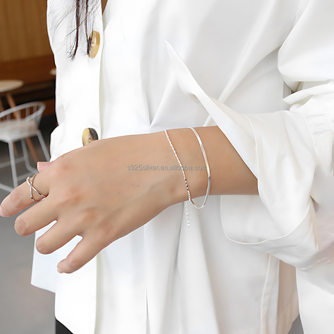 Accesorios de moda para mujer de alta calidad, pulsera de eslabones de cadena 925 de joyería fina Simple de doble capa de plata esterlina